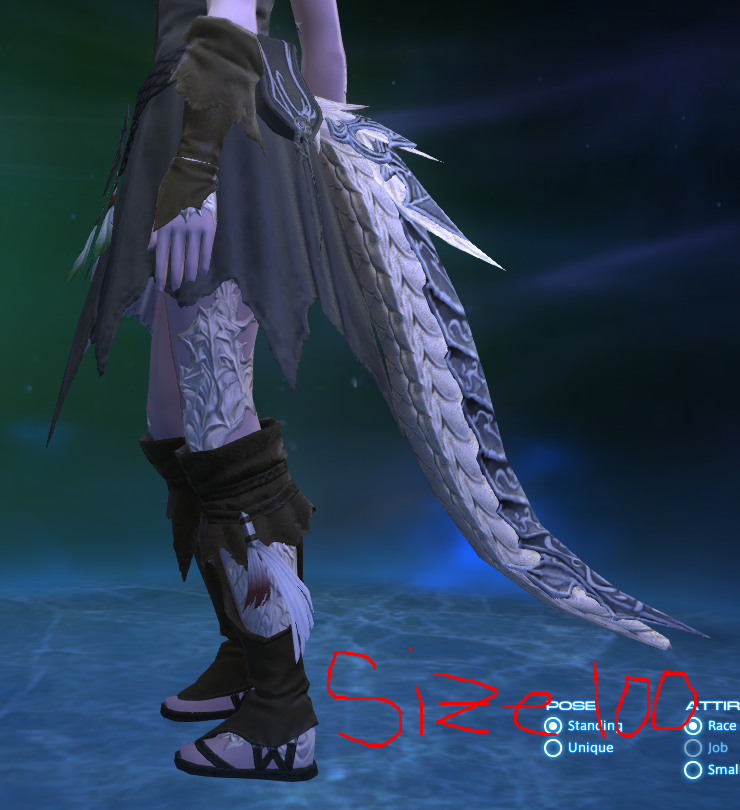 This mod adds a metal/silver armor cuff decor to Tail 2 on Fem Au Ra!